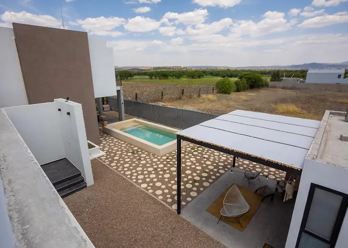 Cabins in San Miguel de Allende with a pool offer a tranquil retreat where guests can unwind amidst the serene beauty of the surrounding landscape. These cozy accommodations often feature charming rustic designs and a warm, inviting atmosphere, making them ideal for both relaxation and social gatherings. The presence of a pool allows visitors to cool off on warm days, creating a perfect setting for lounging under the sun or enjoying evening swims under the stars. Surrounded by vibrant gardens or stunning views, these cabins provide a delightful escape, perfect for those looking to reconnect with nature while enjoying the comforts of a private getaway.